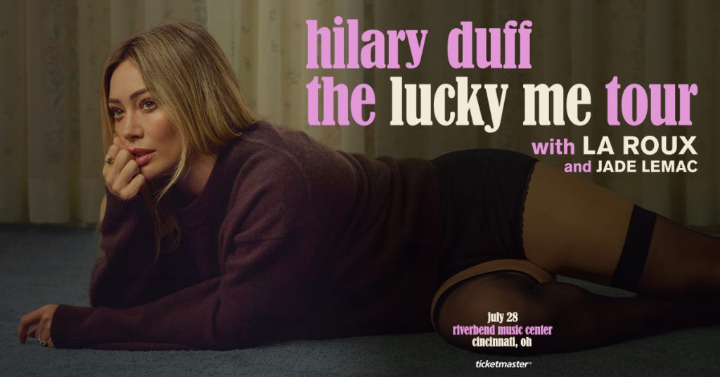 Hilary Duff: the lucky me tour will span seven countries, with dates across the US, Canada, Mexico, the UK, Ireland, Australia, and New Zealand beginning in June and will include a stop in Cincinnati, OH at Riverbend Music Center on Tuesday, July 28. La Roux and Jade LeMac will join as support.